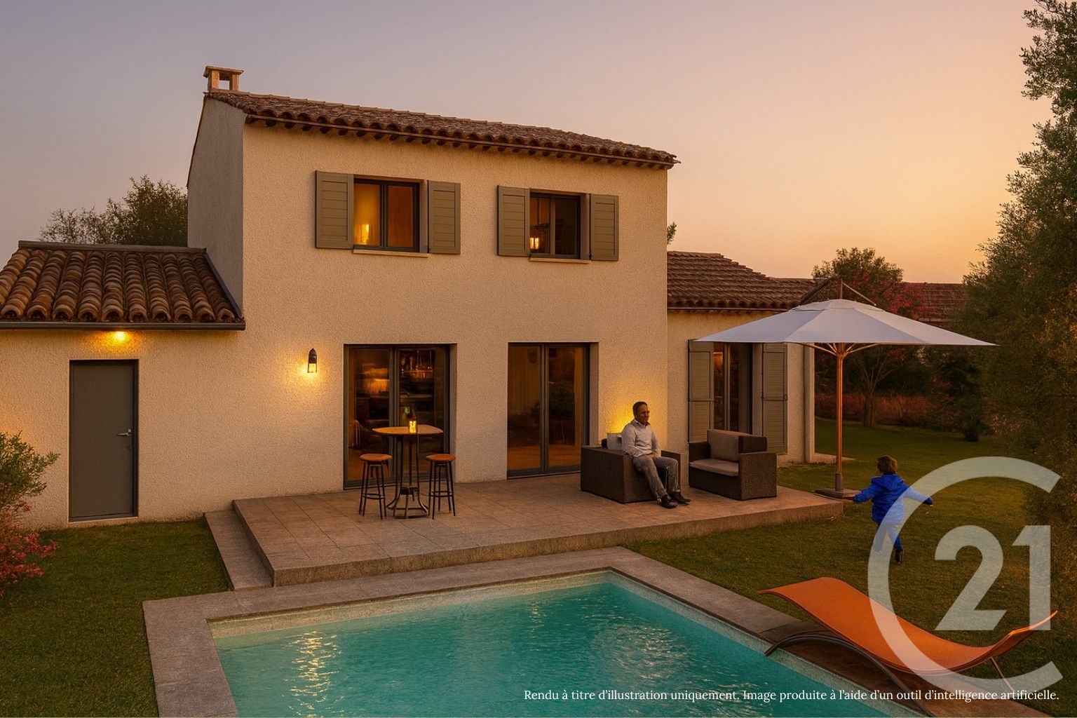 Le jardin clos de 590 m² offre un espace idéal pour profiter du plein air en toute tranquillité. L'ensemble a été conçu pour un confort quotidien, avec des prestations modernes et un excellent niveau de performance énergétique.
